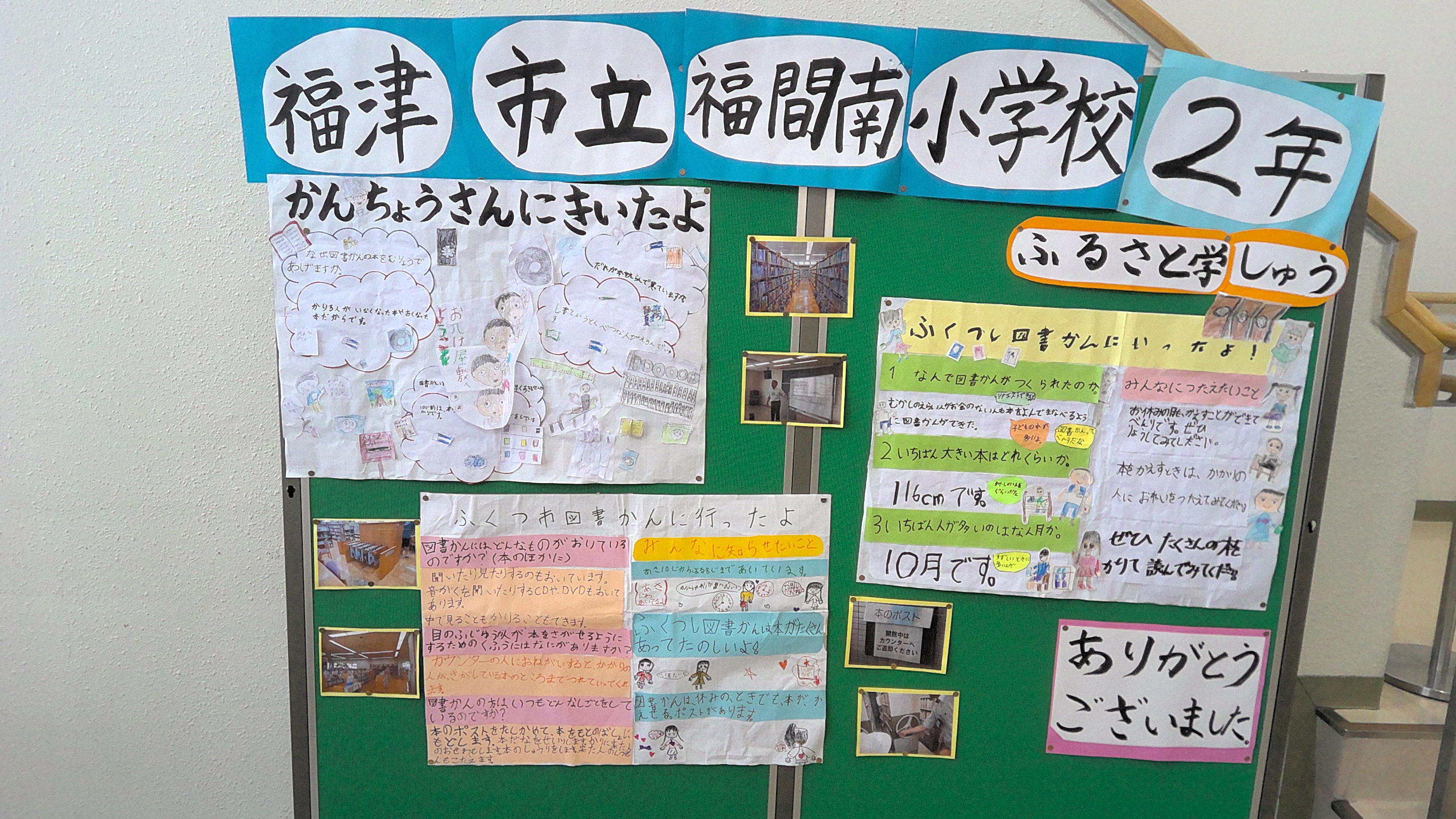 その時の様子や学びをポスターにし、4月12日まで福津市立図書館玄関ロビーに掲示されています。